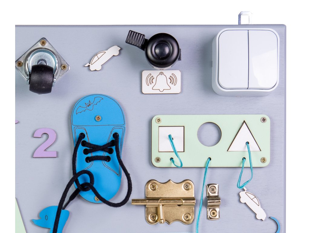 Presúvanie, posúvanie, šnurovanie, prepínanie, krútenie a tak ďalej je fantastický spôsob, ako trénovať manuálne zručnosti, ktoré vám v budúcnosti určite nesmierne pomôžu, napríklad pri učení sa písať. Hra s manipulačnou doskou navyše precvičuje koncentráciu, koordináciu očí a rúk, stimuluje predstavivosť a učí myslenie príčin a následkov. Záver je jednoduchý - táto hračka prináša len výhody! Tabuľu je možné umiestniť na pracovný stôl, položiť na zem, alebo zavesiť na stenu pomocou vstavaných vešiakov špeciálne navrhnutých na tento účel.