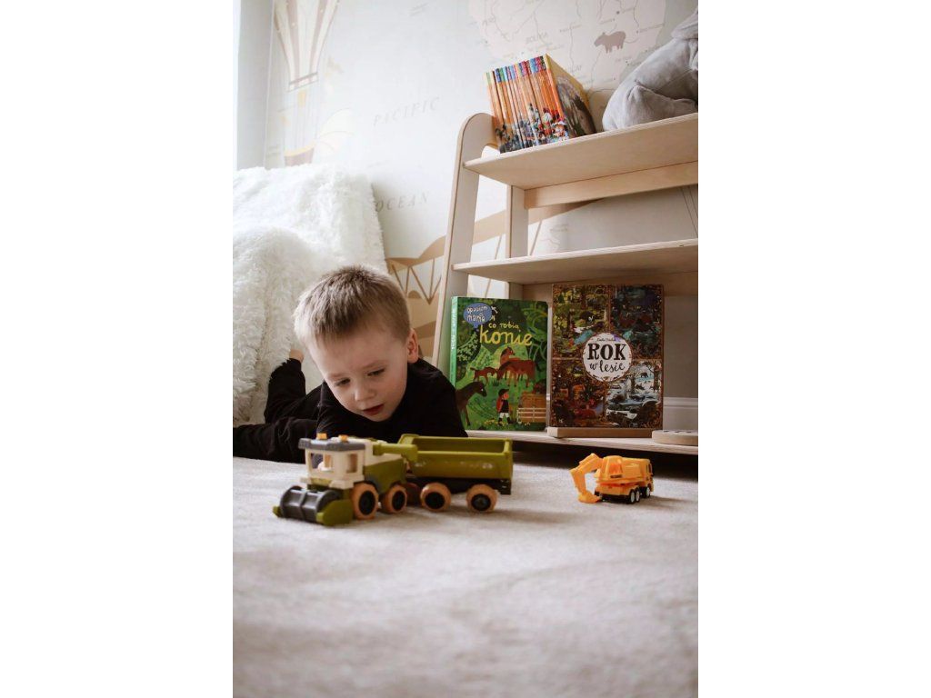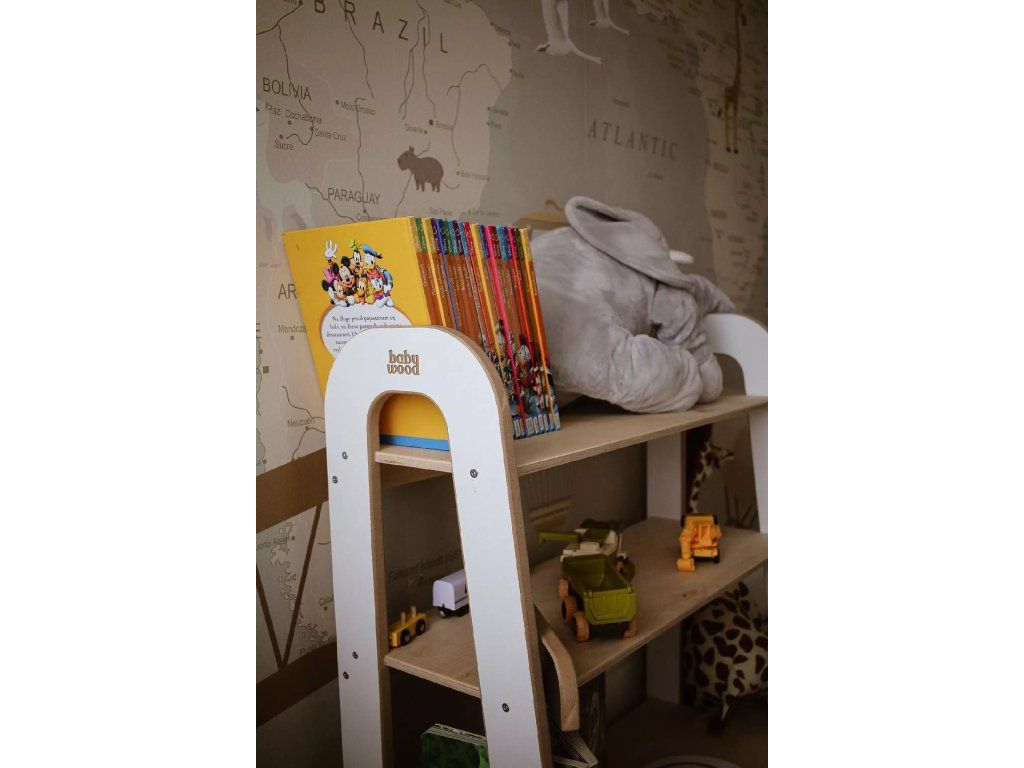 Regál je vyrobený z najkvalitnejších prírodných materiálov, vďaka čomu je pre deti úplne bezpečný a mimoriadne odolný. Jeho jemné neutrálne farby zapadnú do každého domáceho priestoru.