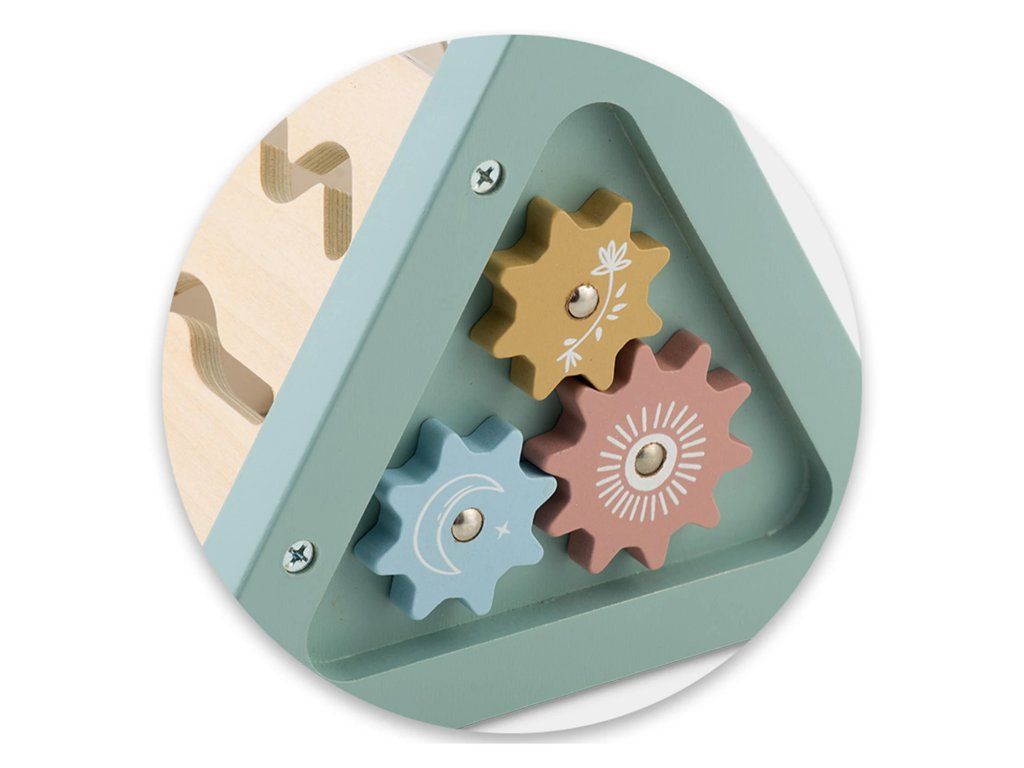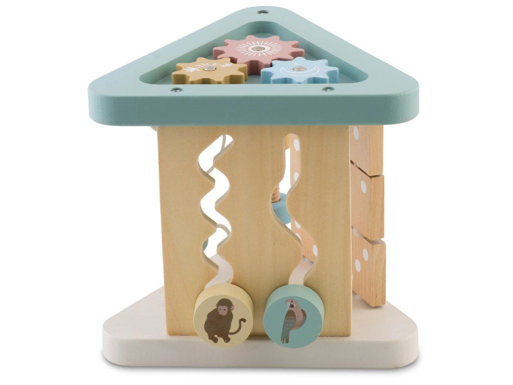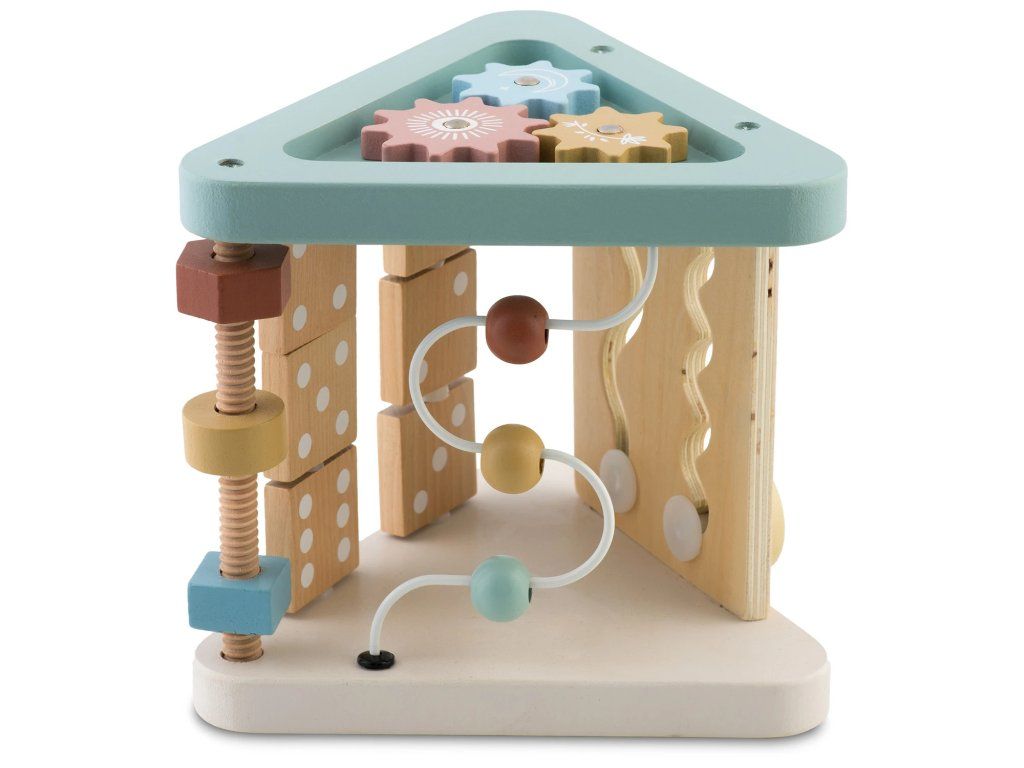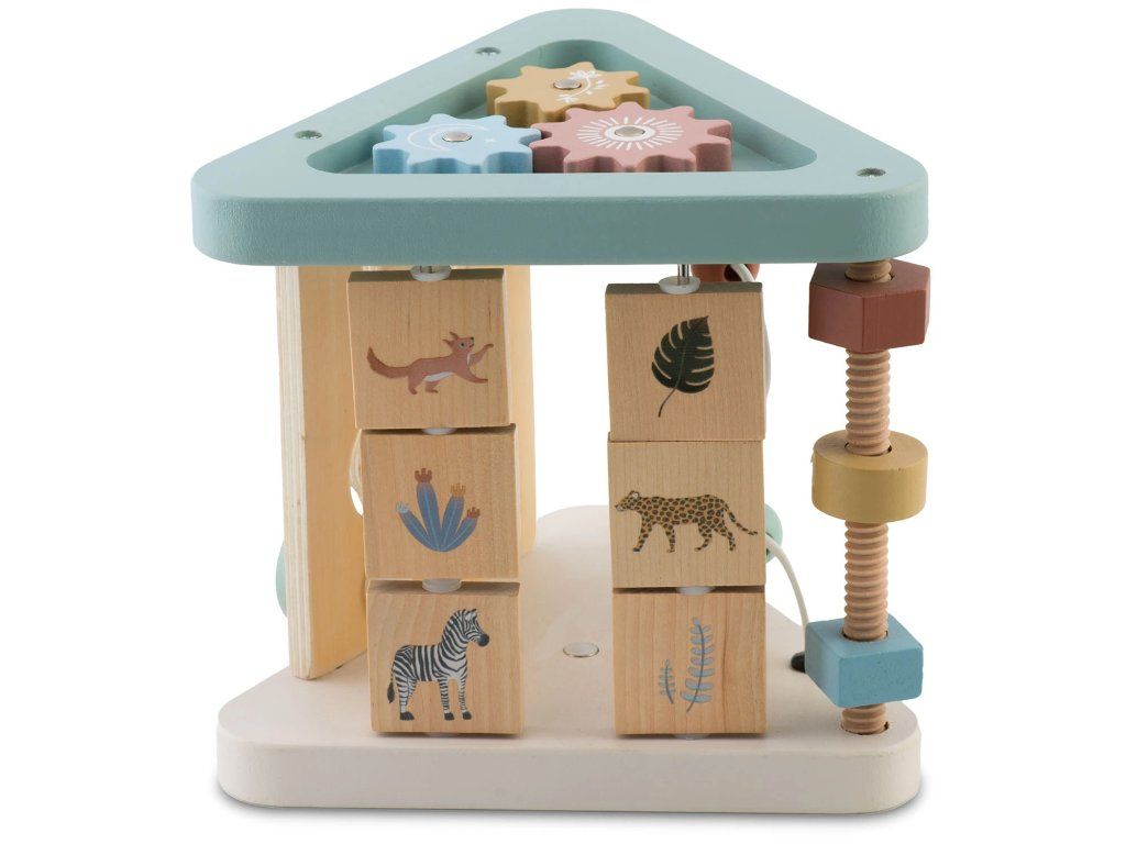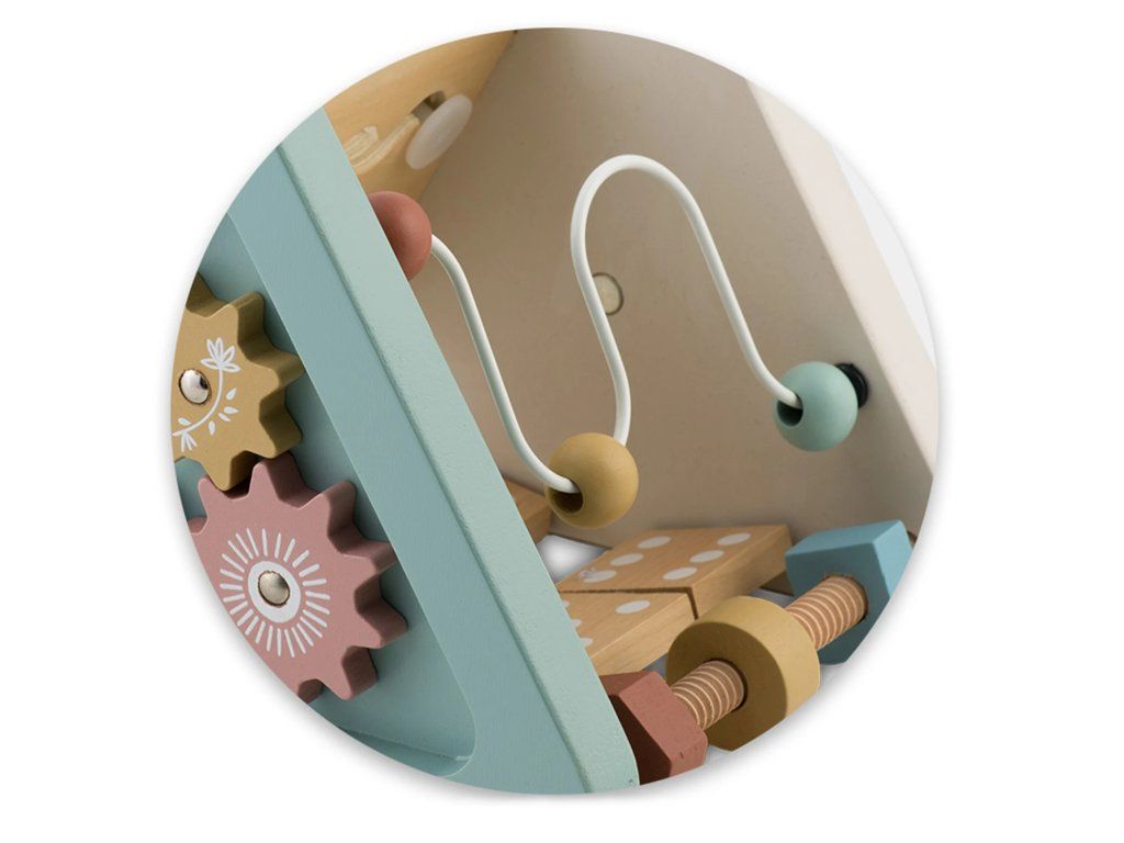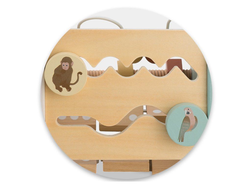 Rozvíjajúca hračka, ktorú si zamiluje každé dieťa. Drevená edukačná hračka je vhodná na veľa hodín zábavy, ale aj učenia, ktoré sa v budúcnosti určite vyplatí. Interaktívna hračka je veľmi pestrá – živé farby podnecujú fantáziu najmenších a podnecujú ich kreativitu. Manipulácia s pohyblivými časťami pomáha najmenším pri precvičovaní malíčkov, manuálnych zručností a koordinácie oko-ruka. Edukačná interaktívna hračka bude ideálna ako na samostatné hranie, tak aj na spoločné hranie s rodičmi. Určite to vyplní čas vášho dieťaťa a nuda zmizne .