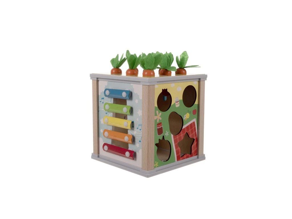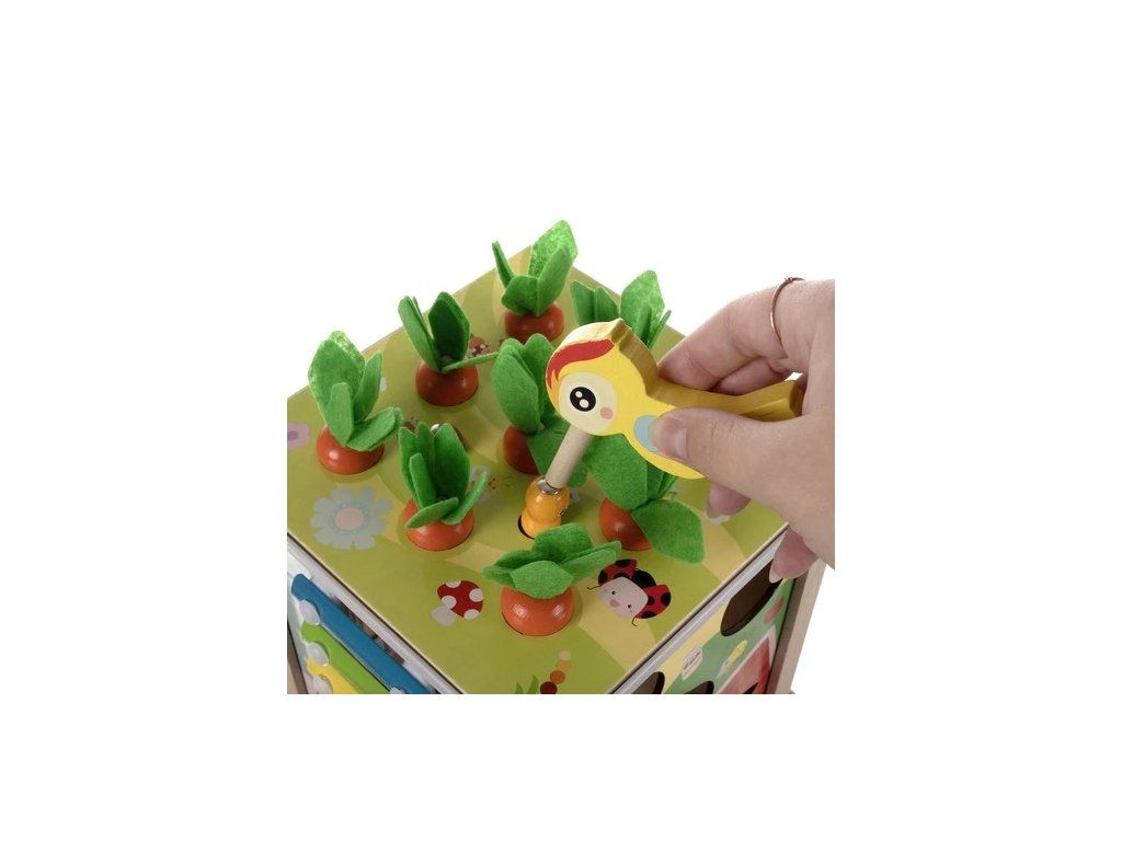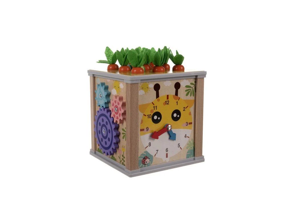 Rozvíjajúca sa hračka, ktorú si zamiluje každé bábätko. Drevená vzdelávacia kocka je nielen mnoho hodín zábavy, ale aj učenie, ktoré sa v budúcnosti určite oplatí. Interaktívna drevená kocka je veľmi pestrá - živé farby podnecujú fantáziu tých najmenších a podnecujú ich kreativitu. Manipulácia s pohyblivými prvkami pomáha najmenším precvičovať si malíčky, manuálnu zručnosť a koordináciu oko-ruka. Výuková interaktívna kocka bude perfektná ako pre samostatnú hru, tak pre spoločné hranie s rodičmi. Určite to vyplní čas vášho dieťaťa a zmizne nuda.