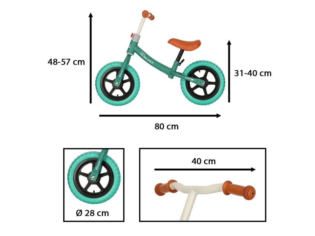 - Rozmery: Výška riadidiel: 48 - 57 cm Výška sedla: 31 - 40 cm Šírka riadidiel: 39,5 cm Dĺžka bicykla: 80 cm