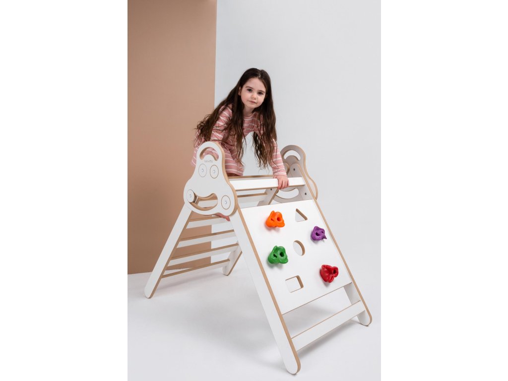 Zhodneme sa – každé, no doslova každé dieťa miluje liezť, kombinovať, siahať vyššie! Pikler je prvok domáceho ihriska, ktorý povzbudí vaše batoľa k vyblázneniu a uvoľneniu energie. Trojuholníkový rebrík podporuje rozvoj hrubej motoriky a striedavých pohybov.