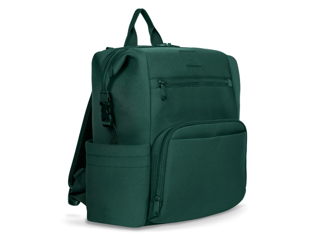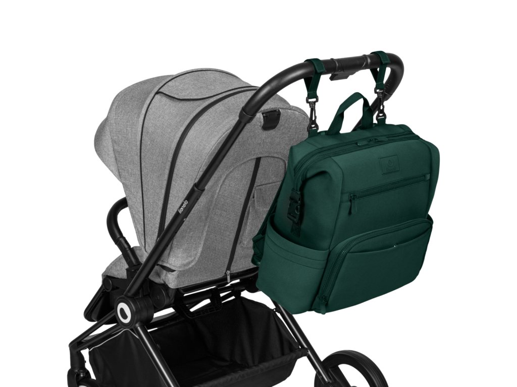 Má 12 praktických vreciek a priehradok, takže každý predmet umiestnený v batohu má svoje miesto. Odnímateľné univerzálne pracky umožňujú pripevniť batoh na akýkoľvek model kočíka. Je vyrobený z pevného a vodeodolného neoprénu, ktorý môžete prať v práčke.