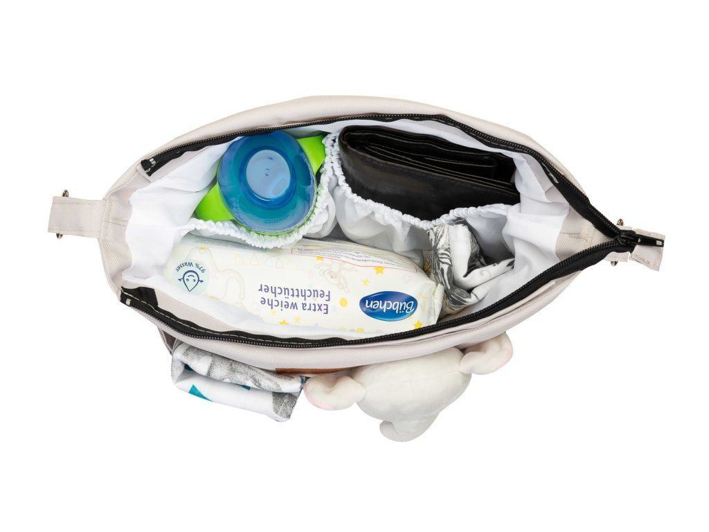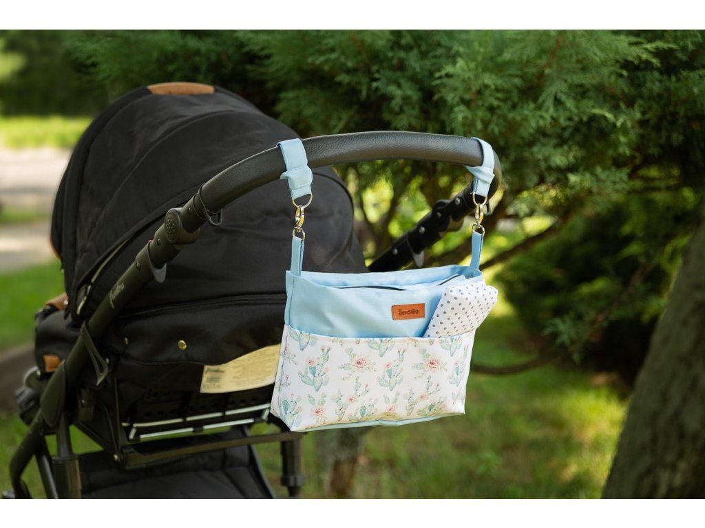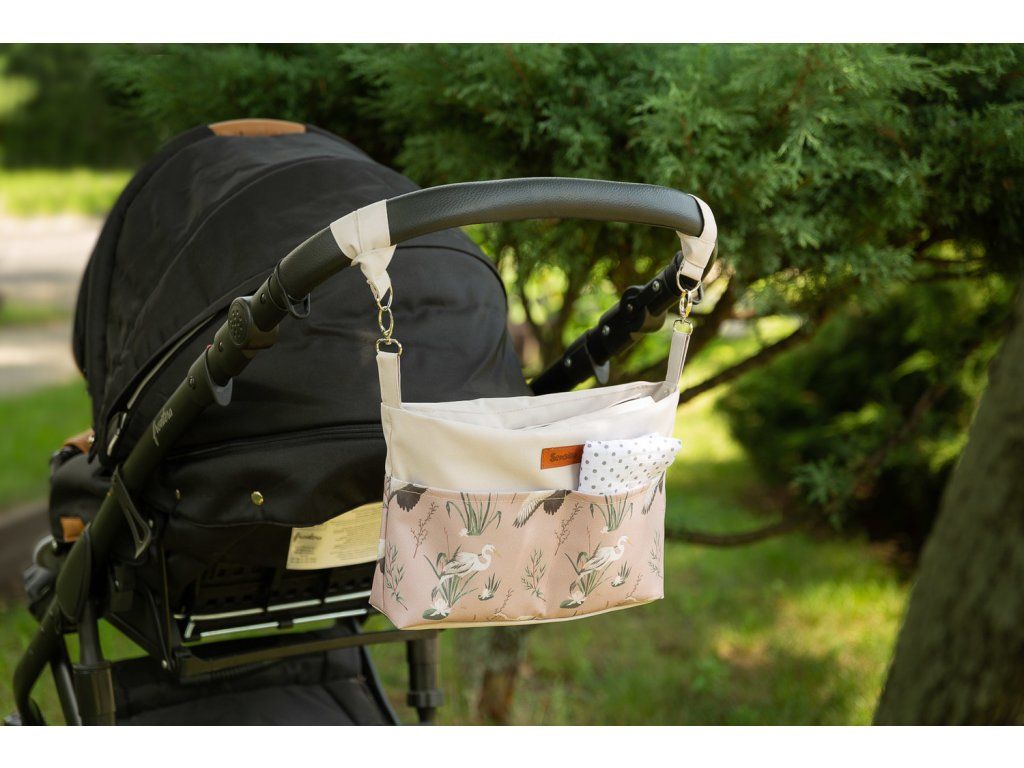 Organizér na kočík je menšou alternatívou tašiek, do ktorých sa zmestia všetky potrebné veci. Ideálne na prechádzky, nákupy alebo výlet. Vpredu má dve priehradky, pričom vo vnútri sú dve veľké vrecká zakončené gumičkou. Celé sa to zapína na zips. Organizér je vyrobený z pevnej nepremokavej látky. Sada obsahuje úchyty na pripevnenie organizéra na rám vozíka.