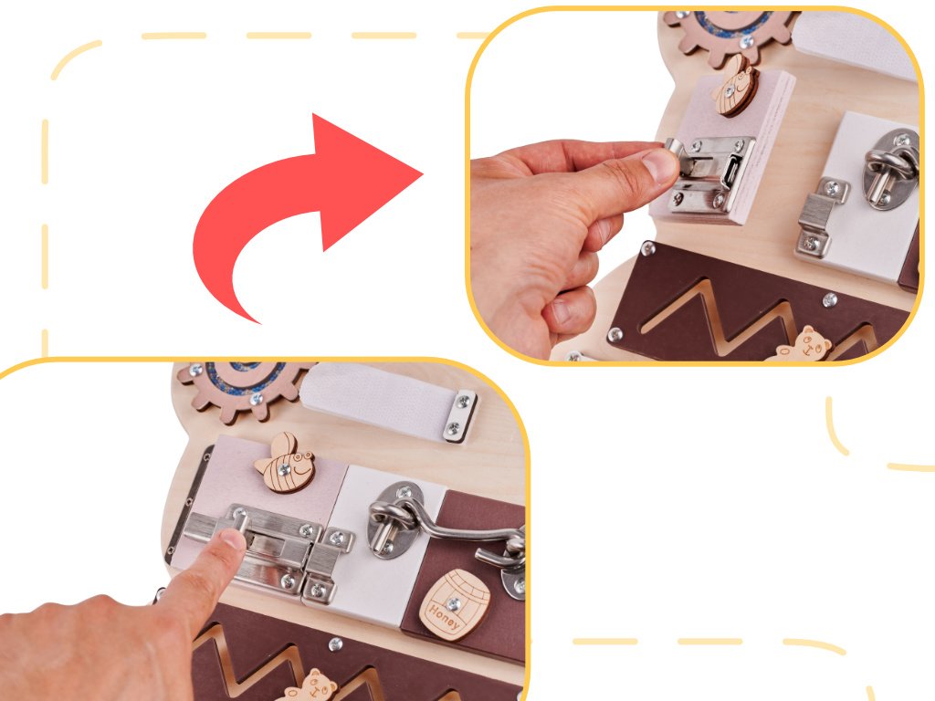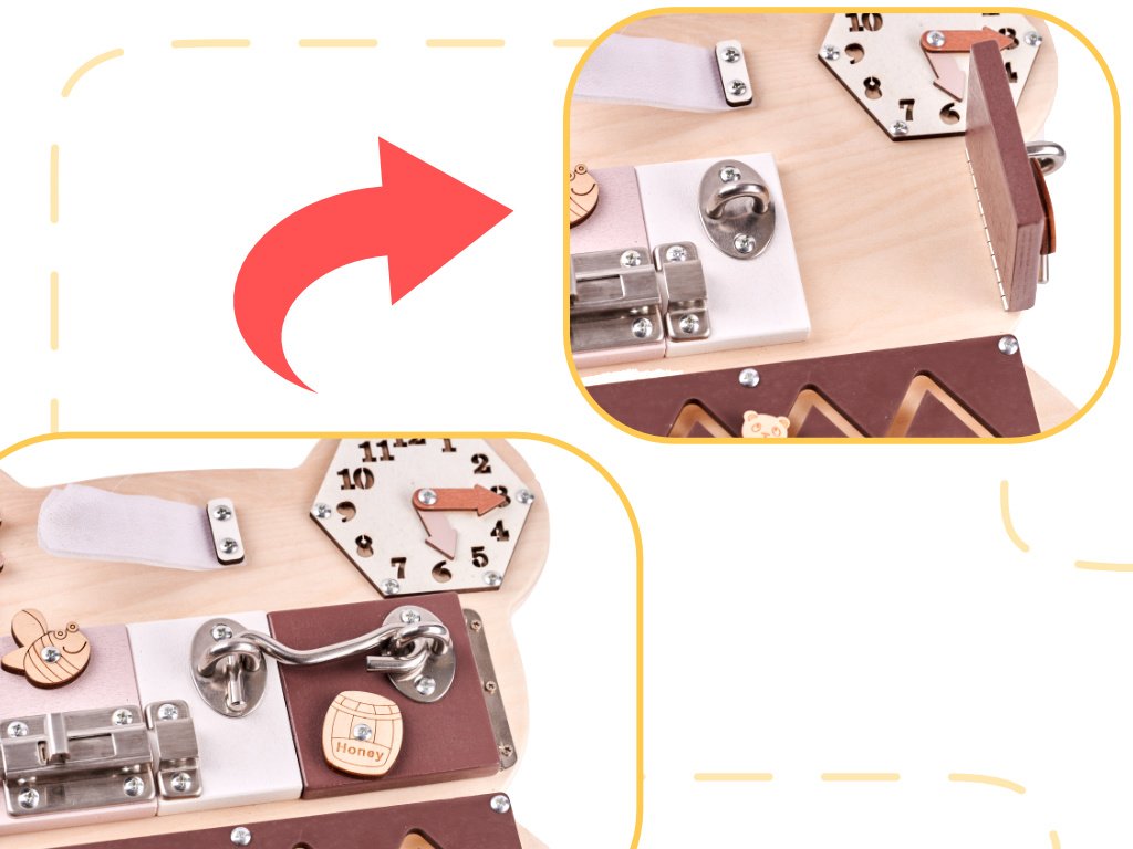 Hra s tabuľou môže byť spočiatku dosť náročná! Otváranie zámkov, praciek a riešenie ďalších "hádaniek" si vyžaduje veľa sústredenia a pozornosti! Batoľa bude musieť byť trpezlivé, aby pochopilo, ako niektoré prvky fungujú !