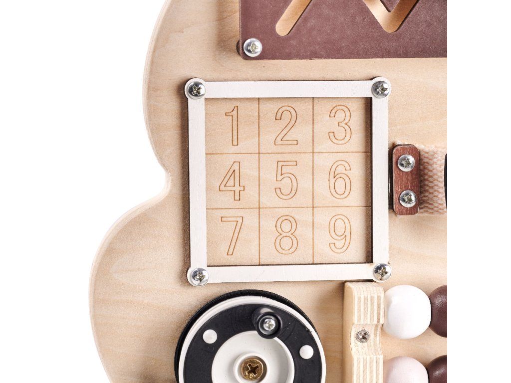 Na hracej ploche je veľa prvkov, ktoré majú aktivizovať batoľa, od najjednoduchších činností, ako je pohybovanie guľôčkami na počítadle, až po zložitejšie, ako je otváranie zámku kľúčom!