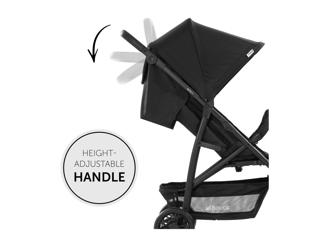 - Rukoväť možno nastaviť až do výšky 30 cm. Vozenie kočíka sa tak pre rodičov stane ešte pohodlnejším, bez toho aby pri tom namáhali svoj chrbát.