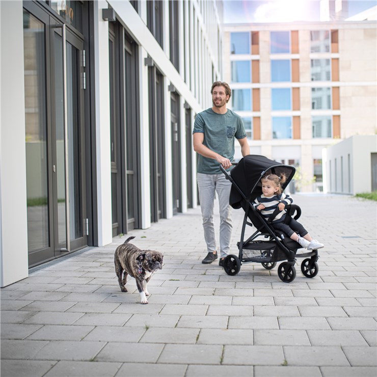 Priestrranné lôžko na ležanie, sa dá nastaviť v niekoľkých polohách do roviny, slnečná strieška sa dá nastaviť ďaleko dopredu, ideálny spoločník pre staršie deti, Rapid má zvýšenú nosnosť až do 25 kg.