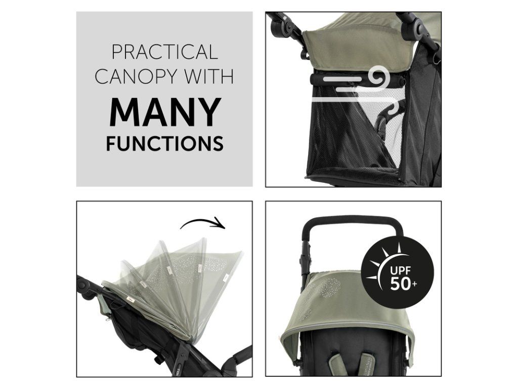 Umývateľná opierka nôh bola vyrobená pre ideálne opieranie i nastupovanie dieťaťa, špinavé topánky tak nemajú ani šancu prísť do kontaktu s látkami. Výškovo nastaviteľná rukoväť na výšku 30 cm (78 - 110 cm) uspokojí akýkoľvek výškový rozdiel otca či matky, takže madlo kočíka bude vždy v ideálnej výške.