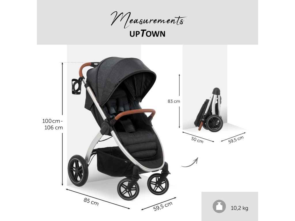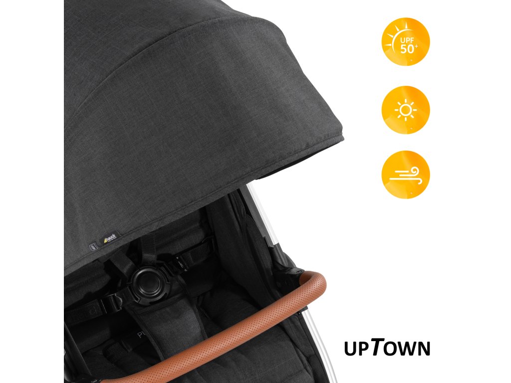 S otočnými gumenými kolesami a odpruženým ľahkým hliníkovým rámom môžete manévrovať s Uptown pohodlne a ľahko na akomkoľvek povrchu.
