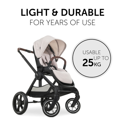 Na Walk N Care boli použité exkluzívne vysoko kvalitné materiály s odolnými látkami a jednoduchou údržbou. Sedadlo je mäkko polstrované a otáča sa jediným kliknutím, či už ide o priamy očný kontakt s dieťaťom alebo chcete, aby malo výhľad na to, čo sa deje v okolí. Opierku chrbta nastavíte do ľahu jednou rukou a vďaka nastaviteľnej opierke nôh môžete kočík (spolu s vhodne zvolenou dokúpiteľnou ergonomickou podložkou) používať hneď po narodení bábätka.