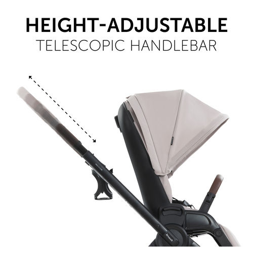 Teleskopická rodičovská rukoväť je nastaviteľná do 5-tich pozícií v rozmedzí 92 až 107 cm. Vďaka jej mäkkému polstrovaniu bude pre Vás tlačenie jednou rukou alebo zdolávanie dlhších prechádzok obzvlášť pohodlné a šetrné k Vášmu chrbtu. Zároveň Vám vytvorený odstup od kočíka ponúka dostatočný priestor pre nohy, a to aj v prípade, že ste s partnerom rôzne vysokí.