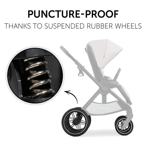 Naviac má vo výbave aj veľké zadné gumové kolesá (30,5 cm), ktoré sú bezúdržbové a disponujú kvalitným odpružením tlmiacim nárazy. Ľahko tak prekonáte vysoké obrubníky alebo nerovné chodníky v meste, ale aj na dedine!