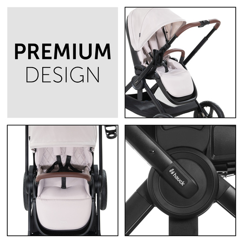 Rodičovská rukoväť a detské madlo sú oproti látkam sedadla volené z farebne kontrastnej hnedej ekokože a dodávajú tak kočíku imidž, s ktorým Vás už nikto neprehliadne.