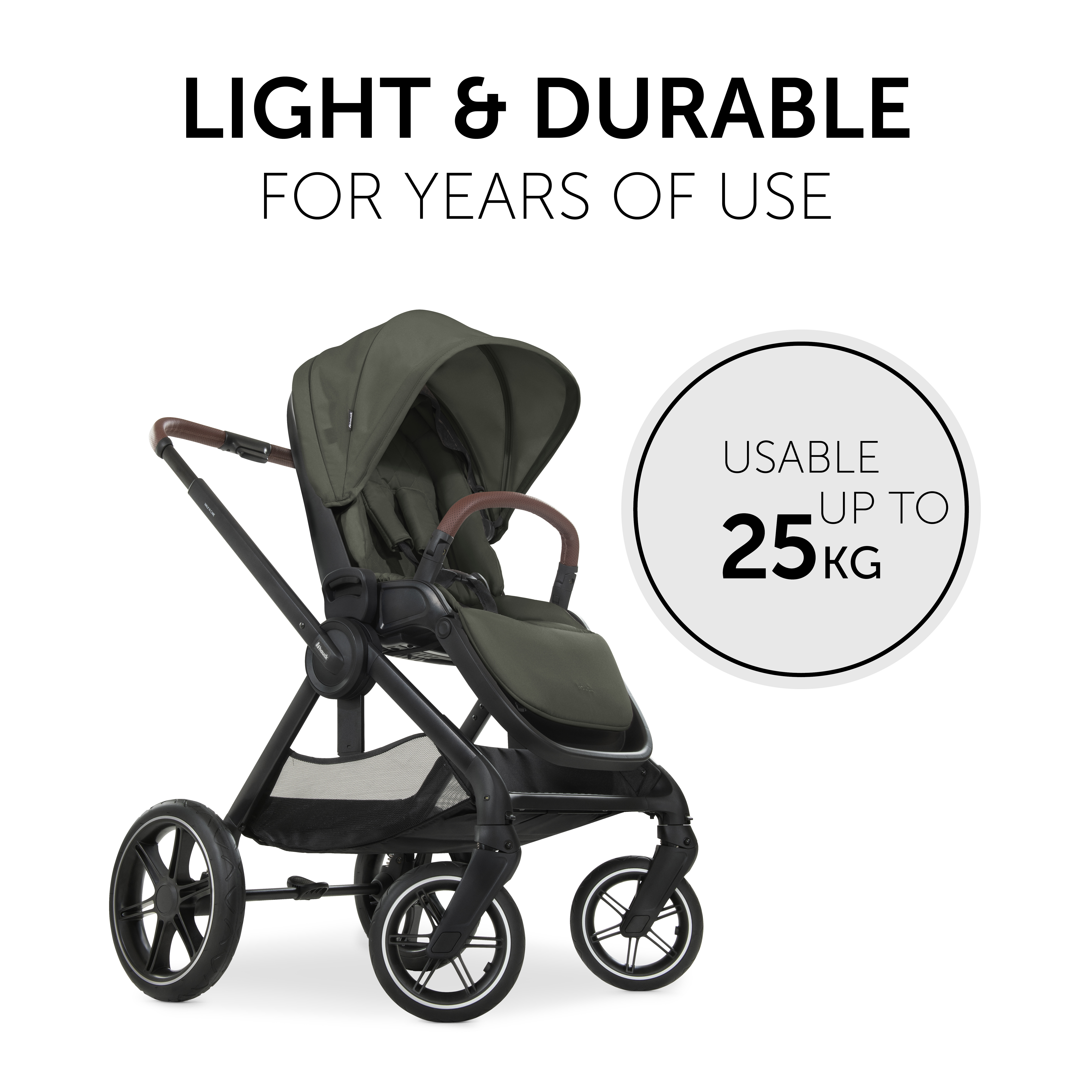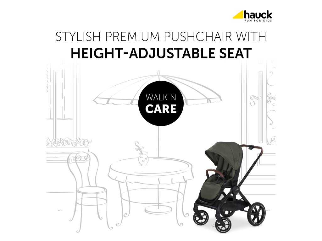 Na Walk N Care boli použité exkluzívne vysoko kvalitné materiály s odolnými látkami a jednoduchou údržbou. Sedadlo je mäkko polstrované a otáča sa jediným kliknutím, či už ide o priamy očný kontakt s dieťaťom alebo chcete, aby malo výhľad na to, čo sa deje v okolí. Opierku chrbta nastavíte do ľahu jednou rukou a vďaka nastaviteľnej opierke nôh môžete kočík (spolu s vhodne zvolenou dokúpiteľnou ergonomickou podložkou) používať hneď po narodení bábätka.