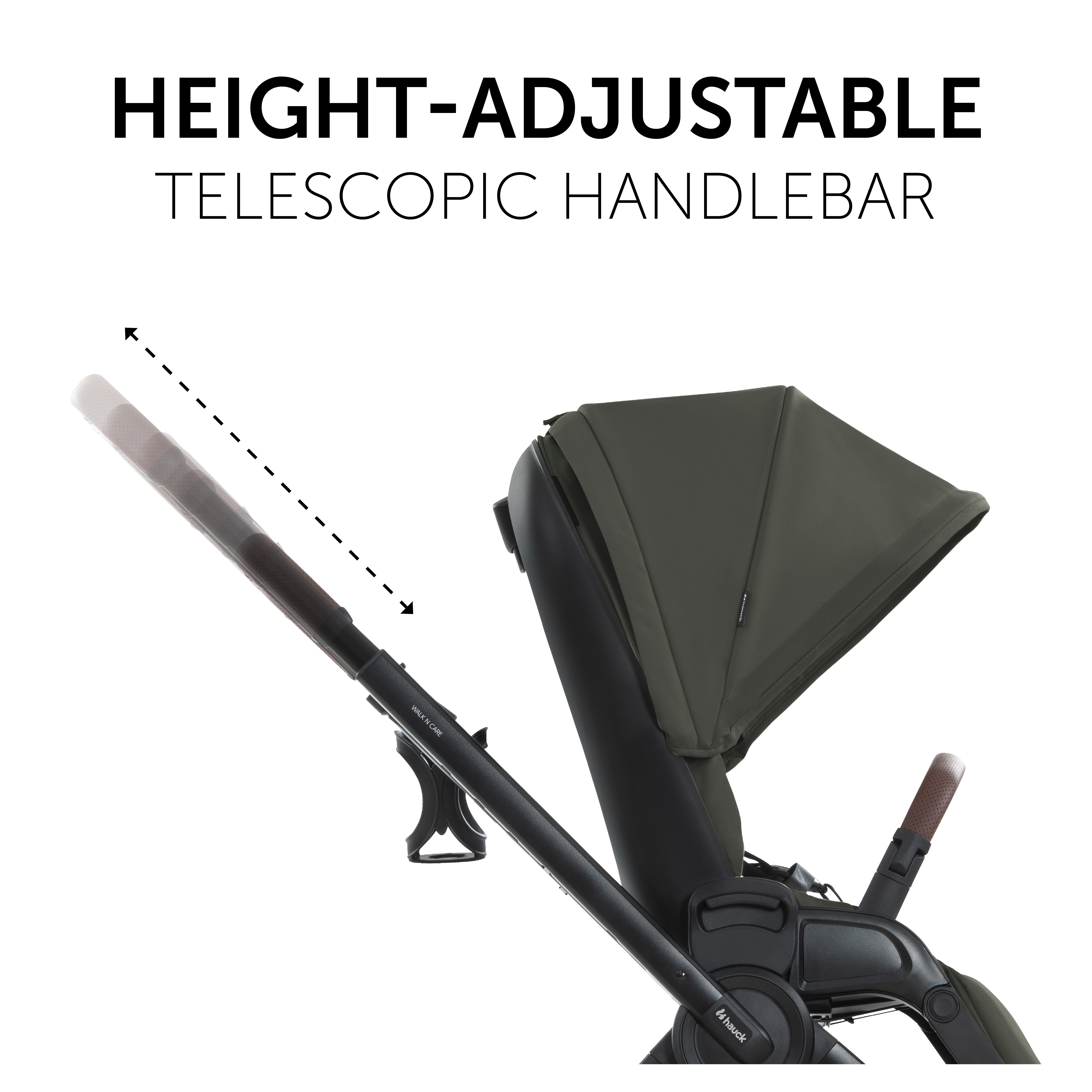 Teleskopická rodičovská rukoväť je nastaviteľná do 5-tich pozícií v rozmedzí 92 až 107 cm. Vďaka jej mäkkému polstrovaniu bude pre Vás tlačenie jednou rukou alebo zdolávanie dlhších prechádzok obzvlášť pohodlné a šetrné k Vášmu chrbtu. Zároveň Vám vytvorený odstup od kočíka ponúka dostatočný priestor pre nohy, a to aj v prípade, že ste s partnerom rôzne vysokí.