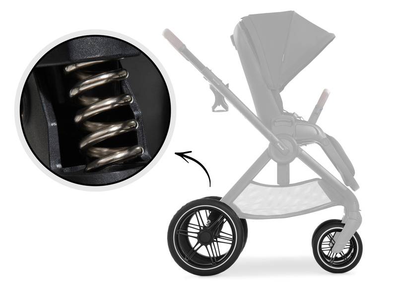 Naviac má vo výbave aj veľké zadné gumové kolesá (30,5 cm), ktoré sú bezúdržbové a disponujú kvalitným odpružením tlmiacim nárazy. Ľahko tak prekonáte vysoké obrubníky alebo nerovné chodníky v meste, ale aj na dedine!