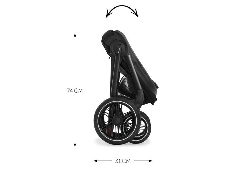 Idete na návštevu? Alebo možno na dovolenku? Pár pohybov a kočík jednoducho zložíte do kompaktného rozmeru 74 x 60 x 31 cm, a to iba jednou rukou! Sedadlo môže byť nasadené na kočíku v smere, ale aj proti smeru jazdy. Samostatné státie po zložení je samozrejmosťou. Vďaka jeho malým rozmerom po zložení ho tiež ľahko uložíte doma alebo do malého kufra auta.