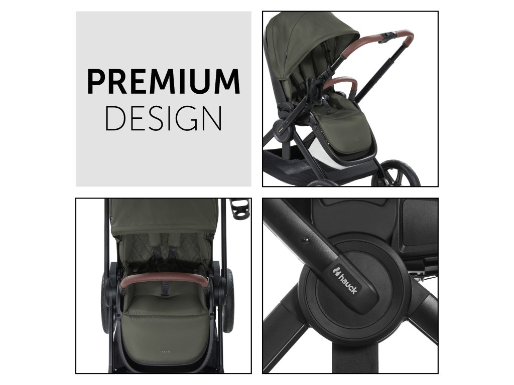 Rodičovská rukoväť a detské madlo sú oproti látkam sedadla volené z farebne kontrastnej hnedej ekokože a dodávajú tak kočíku imidž, s ktorým Vás už nikto neprehliadne.