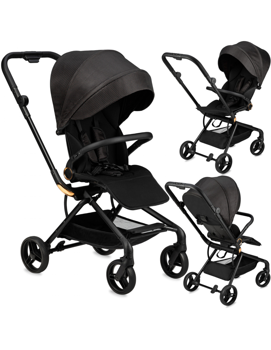 Strieška kočíka MoMi ADELLE je dostupná v dvoch farbách: v čierno-zlatej a čierno-červenej. Vďaka tomu si budete môcť vybrať svojho favorita.Kočík má ergonomické a otočné kolieska vyrobené z peny EVA to znamená že sú odolné proti prepichnutiu, žiadny povrch vás nebude odstrašovať.