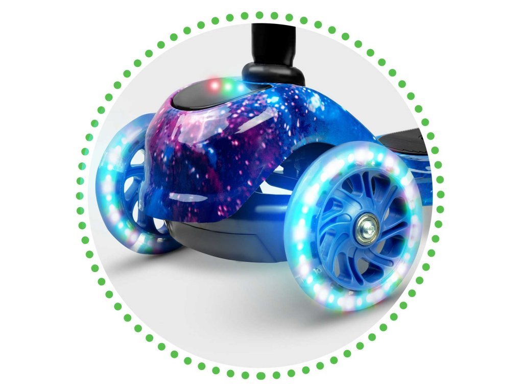 Kolobežka slúži roky , vďaka možnosti výškového nastavenia.Táto kolobežka vám umožňuje riadiť ju vyvážením tela bez otáčania riadidiel. Stačí sa nakloniť požadovaným smerom – a je to. Dieťa si dokáže rýchlo osvojiť túto techniku jazdy a zároveň si trénuje zmysel pre rovnováhu. Je to aj bezpečnejšia kolobežka pre menšie deti – samotná kolobežka je vďaka trom kolieskam stabilná vo vertikálnej polohe.
