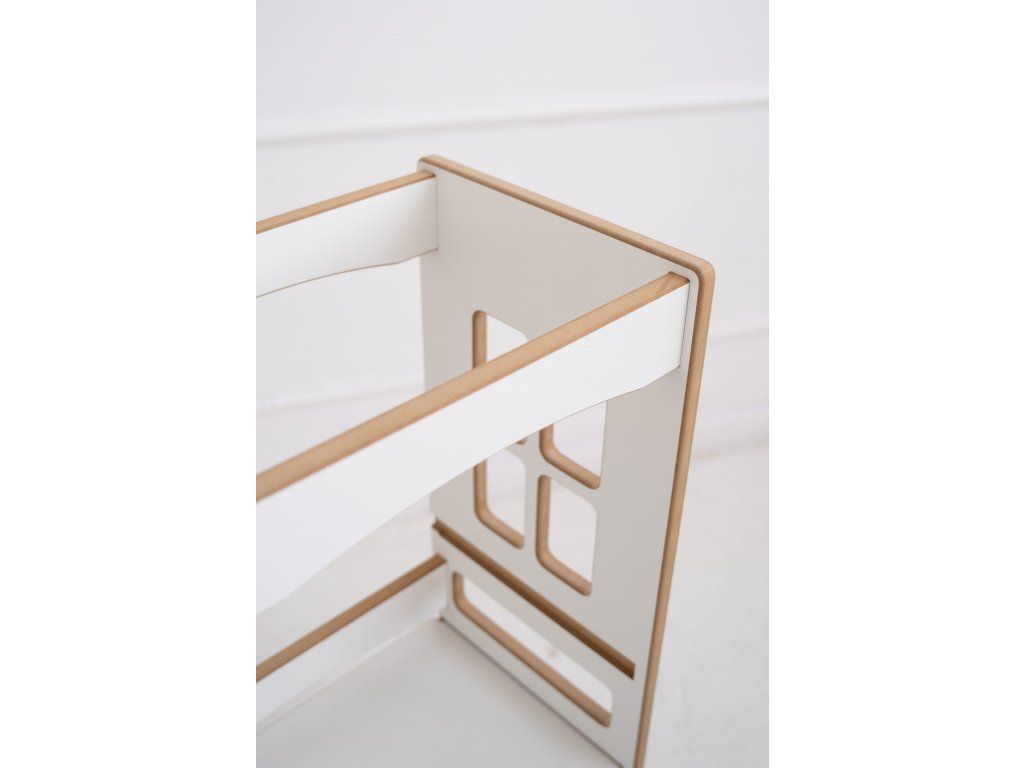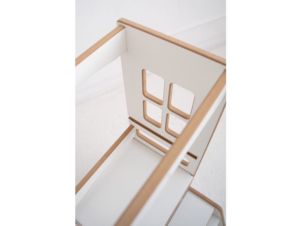Pevne vyrobený z laminovanej dosky, má všetky hrany starostlivo zaoblené - a priečka na zadnej strane navyše zabraňuje jej vypadnutiu.