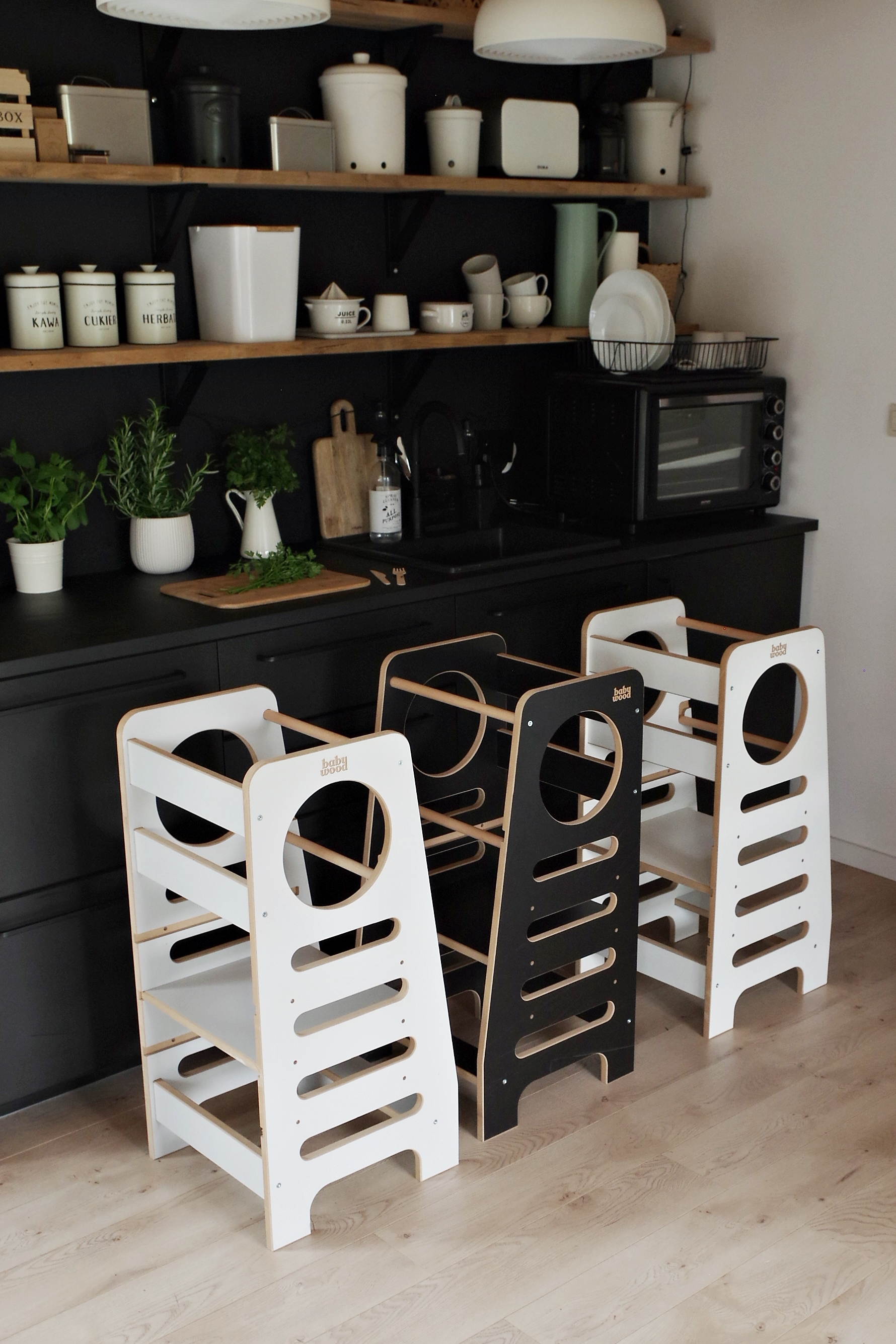 Kuchynský pomocník od nás vytvorí vášmu dieťaťu bezpečný priestor na učenie a hru. Ide o kombináciu stabilnej plošiny, podnožky a kuchynského pomocníka, ktorý vďaka svojej funkčnosti poteší každé dieťa aj jeho rodiča. Pomocou kuchynského asistenta sa dieťa ľahko dostane na kuchynskú linku alebo stôl, a tak bude môcť vykonávať jednoduché činnosti, ako sú: krájanie, mixovanie a dokonca umývanie po jedle. To všetko je samozrejme pod dohľadom rodiča!