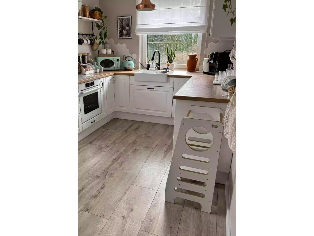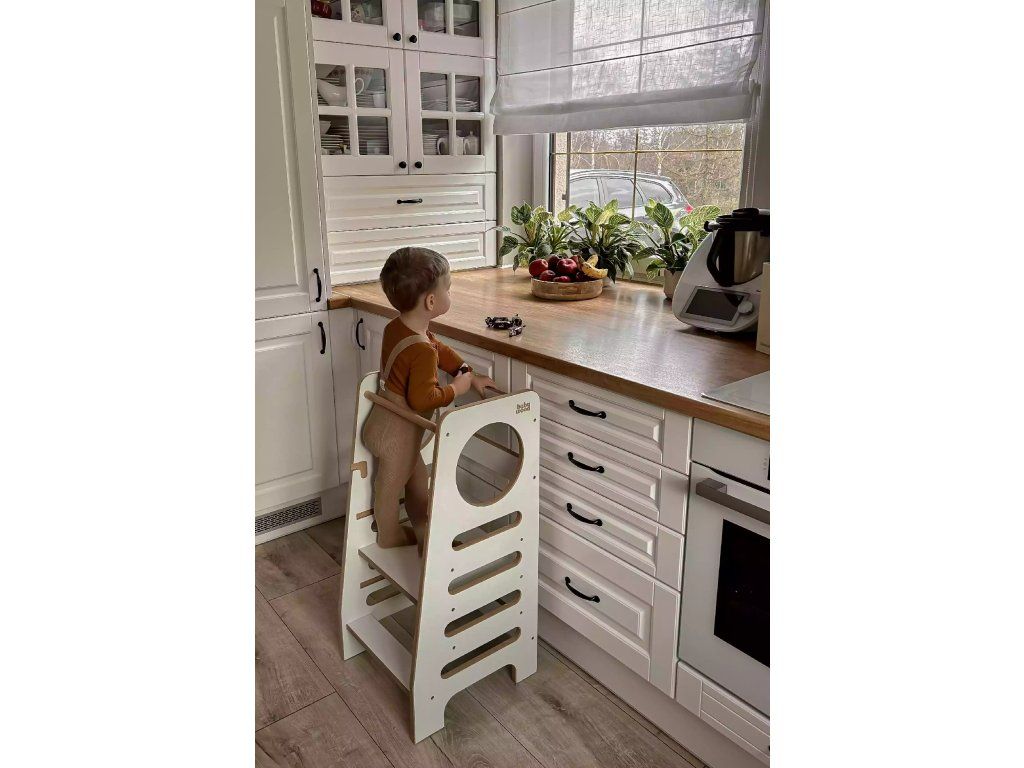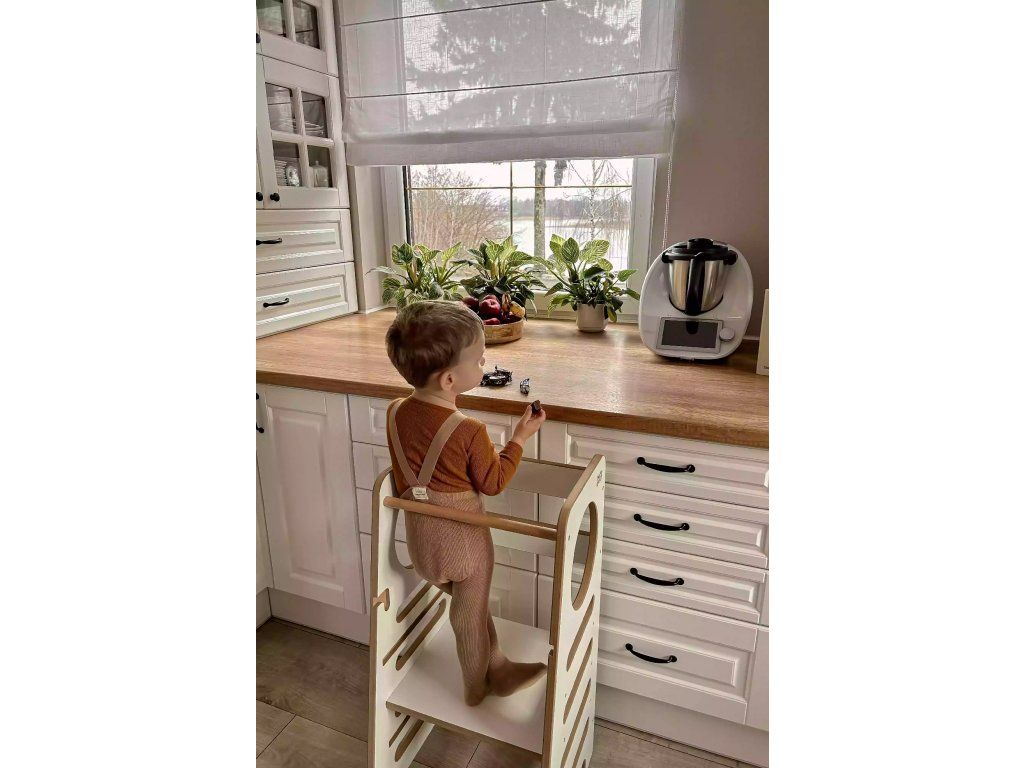 Kuchynský pomocník od nás vytvorí vášmu dieťaťu bezpečný priestor na učenie a hru. Ide o kombináciu stabilnej plošiny, podnožky a kuchynského pomocníka, ktorý vďaka svojej funkčnosti poteší každé dieťa aj jeho rodiča. Pomocou kuchynského asistenta sa dieťa ľahko dostane na kuchynskú linku alebo stôl, a tak bude môcť vykonávať jednoduché činnosti, ako sú: krájanie, mixovanie a dokonca umývanie po jedle. To všetko je samozrejme pod dohľadom rodiča!