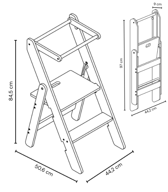 Skladací pomocník do kuchyne vám bude doručený v samomontážnej forme. Nebojte sa, je to jednoduché! Inštalácia je mimoriadne jednoduchá a intuitívna. Prikladáme podrobný návod, ktorý vám pomôže krok za krokom vybudovať toto funkčné a bezpečné miesto pre vaše dieťa v kuchyni. Za krátky čas získate túto úžasnú podporu, ktorá vášmu malému kuchárovi umožní zapojiť sa do každodenných príprav.