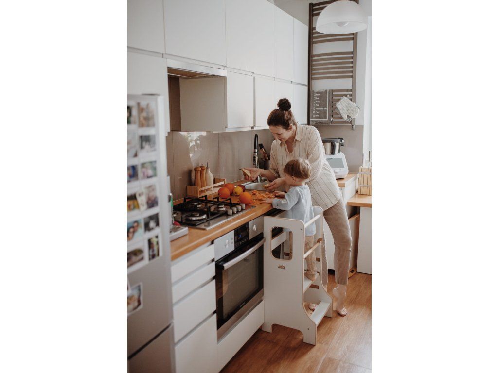 Mať pomocníka do kuchyne nám určite uľahčí každodenné fungovanie. Získame nielen voľné ruky (ktoré predtým držali batoľa), ale aj pokoj! Aj keď používanie kuchynského pomocníka by malo prebiehať pod drobnohľadom rodiča, už po niekoľkých minútach si všimneme jeho neskutočné výhody.