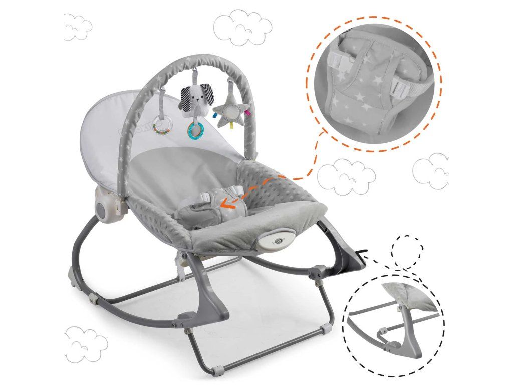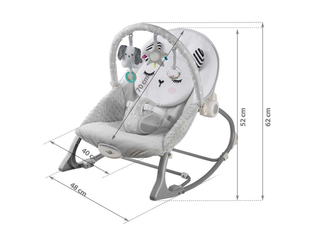 Kolíska je vybavená odnímateľnou čelenkou s pripojenými šuštiacimi hračkami. Tie vaše dieťa zabavia, zatiaľ čo vy budete relaxovať. Tieto jedinečné hračky stimulujú zrak a rozvíjajú hmat.
