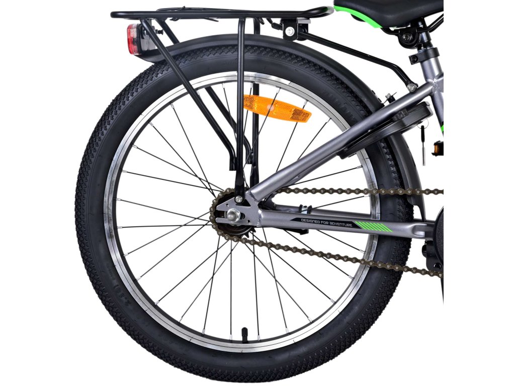 Bezpečnosť je na prvom mieste! Preto tento parádny bicykel nemá zadnú pedálovú brzdu, ale dve ručné brzdy, 6 prevodov, odrazky v kolesách a predné a zadné svetlá na batérie. Myslelo sa aj na pohodlie. Krásny bicykel Volare má praktický zadný nosič na prenášanie všetkých vecí bez námahy, pohodlné mäkké sedlo, stojan, aby váš bicykel vždy úhľadne stál, a pevný zámok. Aby ste si bicykel užili čo najdlhšie, má extra dlhú sedlovku, takže bicykel rastie s dieťaťom ešte dlhšie. Upozorňujeme, že riadidlá nie sú výškovo nastaviteľné, ale predná vidlica je odpružená!