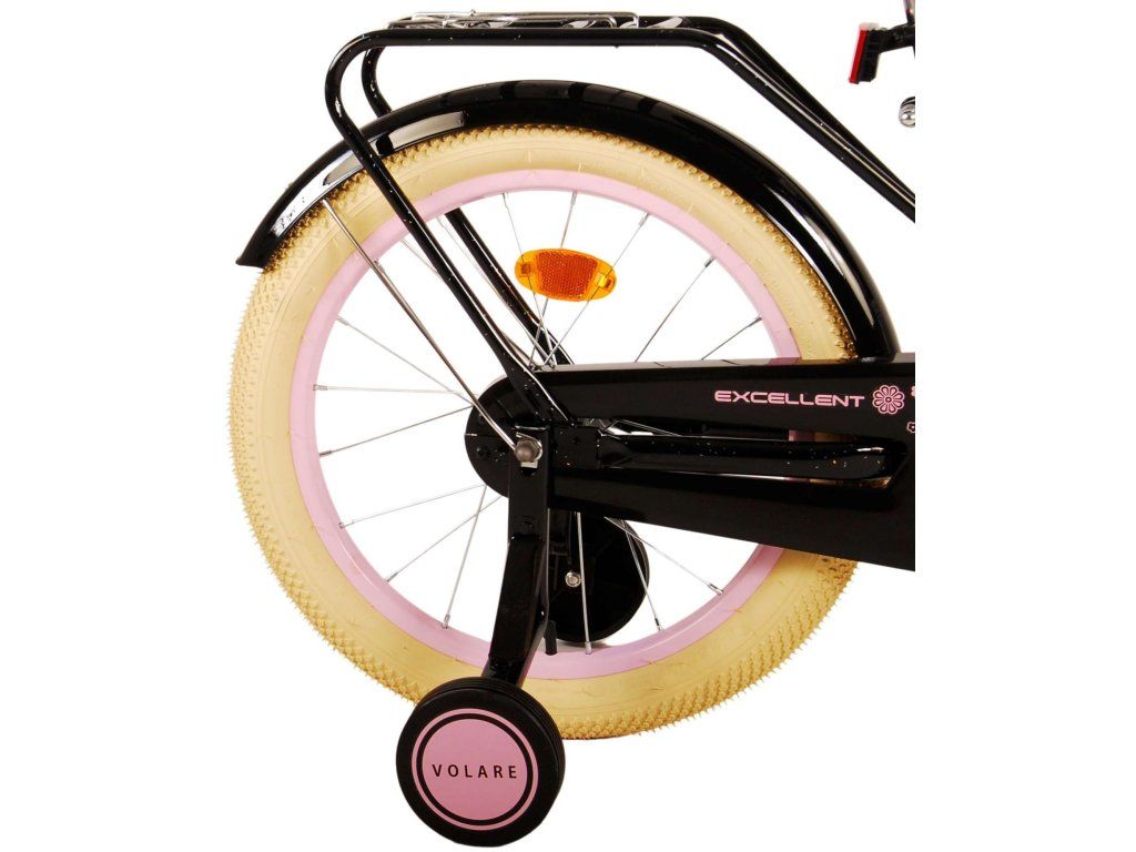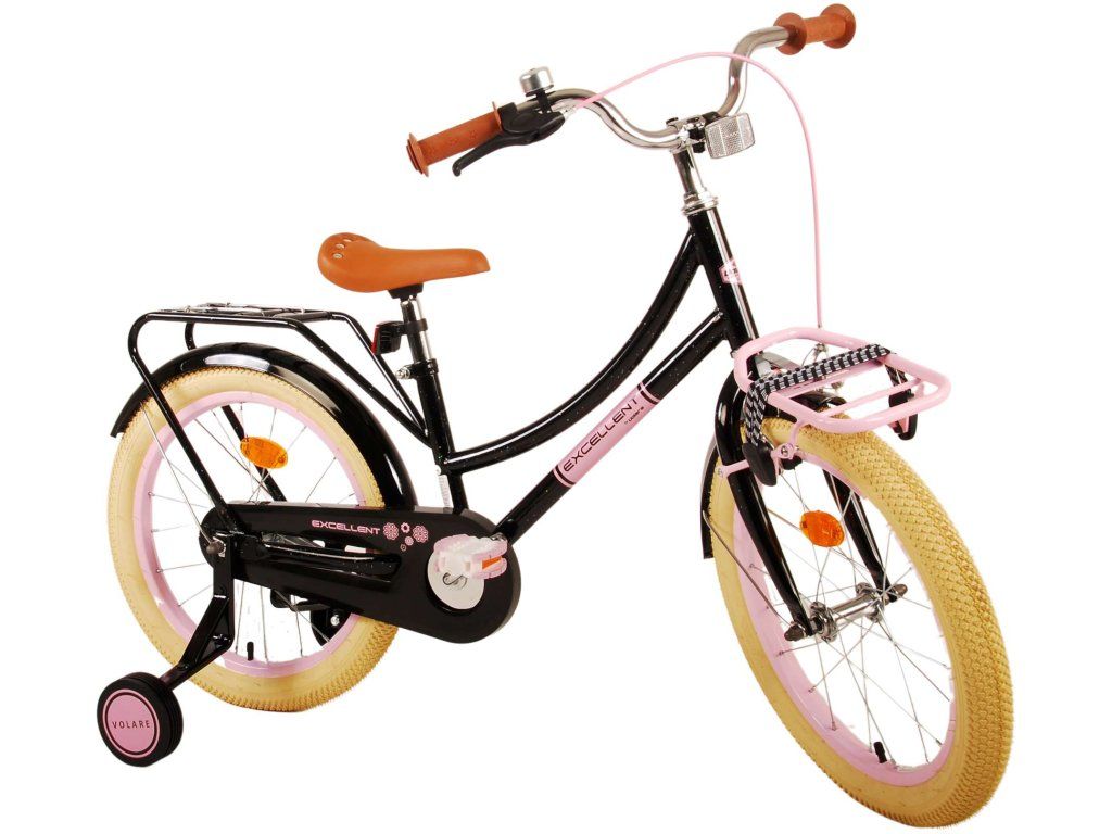 Bezpečnosť je na prvom mieste! Preto má tento cool bicykel ručnú prednú brzdu a zadnú pedálovú brzdu, odnímateľné bočné kolesá a uzavretý kryt reťaze. Okrem toho má bicykel zadné odrazky a pekný zvonček. Myslelo sa aj na pohodlie. Krásny čierny bicykel Volare má šikovný zadný nosič, pohodlné mäkké sedlo a šikovný prútený košík. Aby ste si bicykel užili čo najdlhšie, sedlo a riadidlá sú výškovo nastaviteľné. Dodáva sa so všetkým montážnym materiálom potrebným na zostavenie bicykla!
