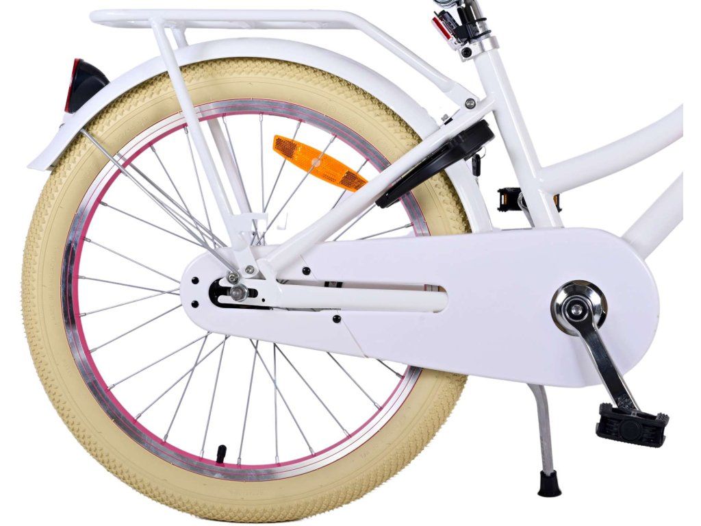 Bezpečnosť je na prvom mieste! Preto má tento cool bicykel ručnú prednú brzdu a zadnú pedálovú brzdu, odnímateľné bočné kolesá a uzavretý kryt reťaze. Okrem toho má bicykel zadné odrazky a pekný zvonček. Myslelo sa aj na pohodlie. Krásny biely bicykel Volare má šikovný zadný nosič, pohodlné mäkké sedlo a šikovný prútený košík. Aby ste si bicykel užili čo najdlhšie, sedlo a riadidlá sú výškovo nastaviteľné. Dodáva sa so všetkým montážnym materiálom potrebným na zostavenie bicykla!