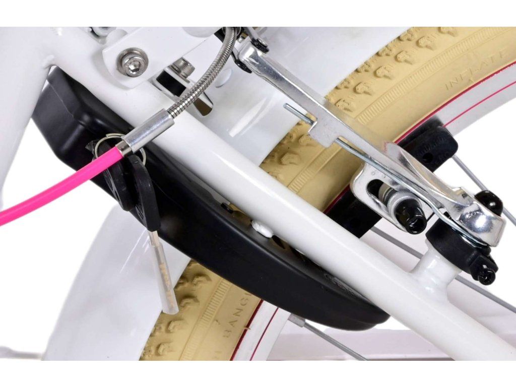 Bezpečnosť je na prvom mieste! Preto má tento cool bicykel 2x ručnú brzdu a uzavretý kryt reťaze. Okrem toho má bicykel zadné odrazky a pekný zvonček. Myslelo sa aj na pohodlie. Krásny biely bicykel Volare má šikovný zadný nosič, pohodlné mäkké sedlo a šikovný prútený košík. Aby ste si bicykel užili čo najdlhšie, sedlo a riadidlá sú výškovo nastaviteľné. Dodáva sa so všetkým montážnym materiálom potrebným na zostavenie bicykla!