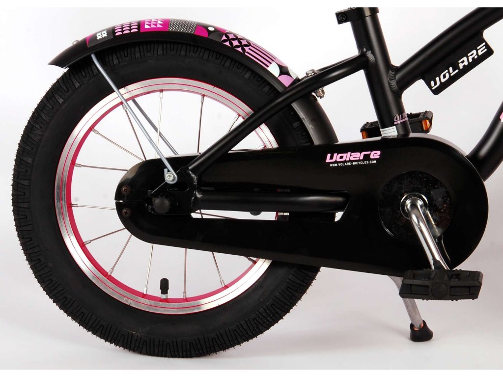 Vďaka 14-palcovému detskému bicyklu Volare Miracle je učenie bicyklovať sa potešením pre každé dieťa! Bezpečnosť na prvom mieste! Preto má tento skvelý bicykel uzavretý chránič reťaze . Bicykel má aj odrazky v pedáloch. Tento bicykel má zadnú pedálovú brzdu a ručnú brzdu. Tento krásny matný čierny Miracle má extra ľahký hliníkový rám, stojan, ktorý udrží váš bicykel na mieste a pohodlné mäkké sedadlo. Aby ste si bicykel užili čo najdlhšie, sedadlo a riadidlá sú výškovo nastaviteľné.