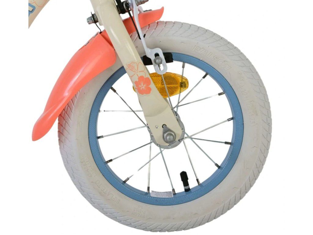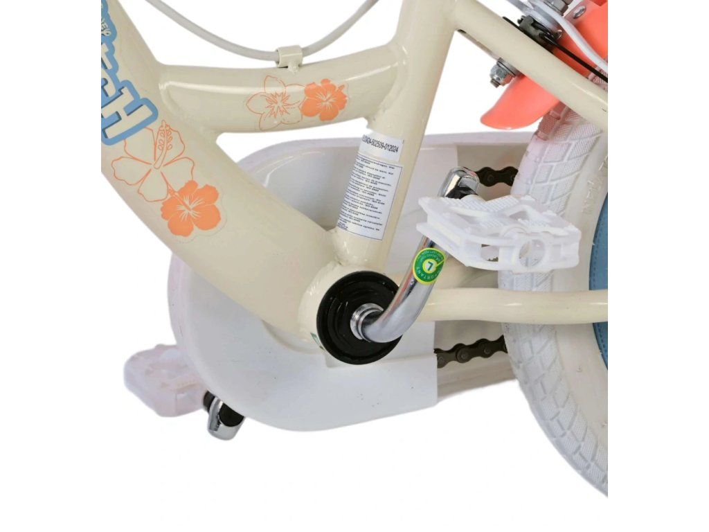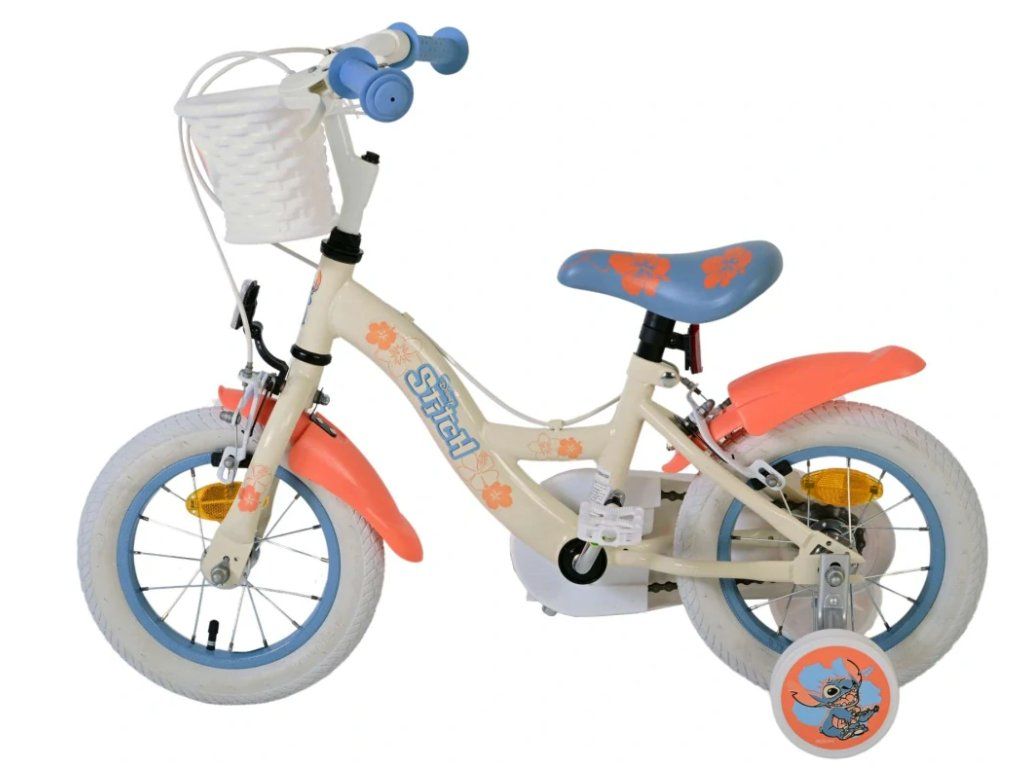 Bezpečnosť je na prvom mieste! Preto má tento skvelý bicykel dve ručné brzdy (bez protibežnej brzdy) a odnímateľné bočné kolieska. Okrem toho má bicykel pekný zvonček. Myslelo sa aj na pohodlie. Krásny bicykel Cream and Tropical Stitch je vybavený košíkom. Aby ste si bicykel užili čo najdlhšie, sedadlo a riadidlá sú výškovo nastaviteľné.