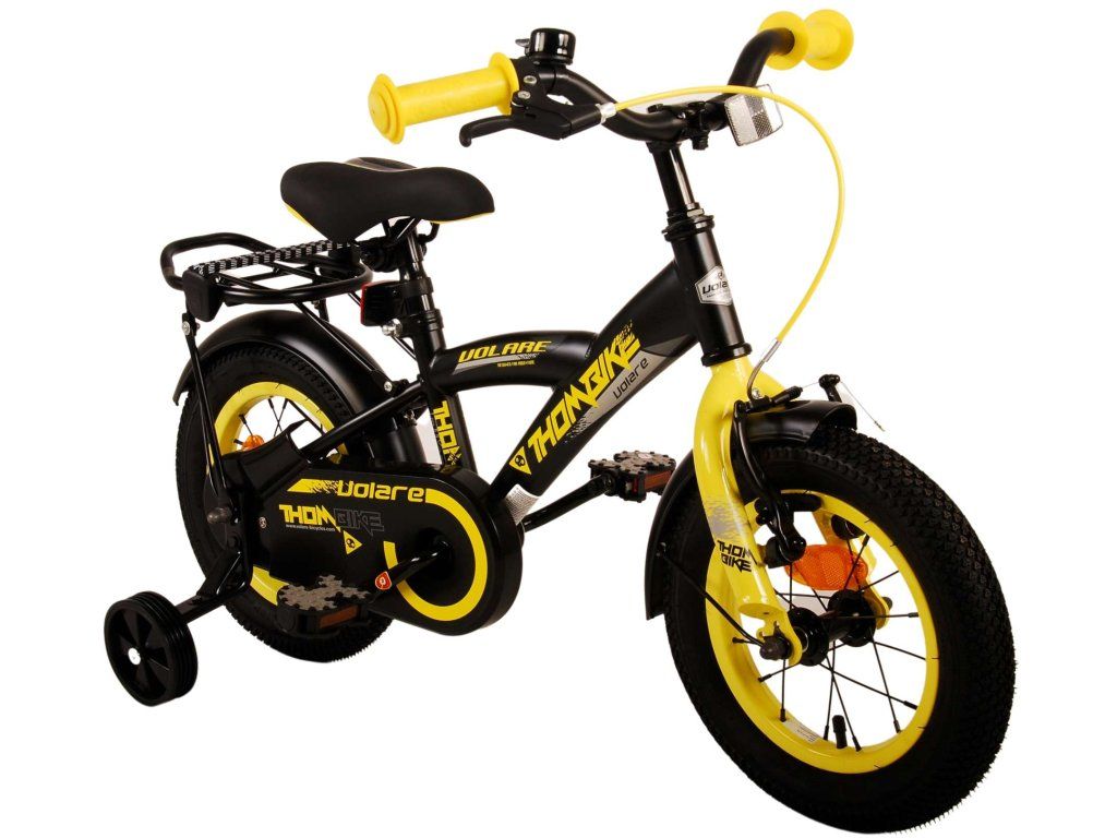 Bezpečnosť je na prvom mieste! Preto má tento cool bicykel prednú ručnú a zadnú pedálovú brzdu, uzavretý kryt reťaze a odnímateľné bočné kolesá. Okrem toho má bicykel pekný zvonček. Myslelo sa aj na pohodlie. Krásny čierny bicykel Volare so žltými akcentmi má luxusné mäkké sedlo, praktický zadný nosič a extra dlhé blatníky, ktoré zadržia všetky nečistoty. Aby ste si bicykel užili čo najdlhšie, sedlo a riadidlá sú výškovo nastaviteľné. Dodáva sa so všetkým montážnym materiálom potrebným na zostavenie bicykla!